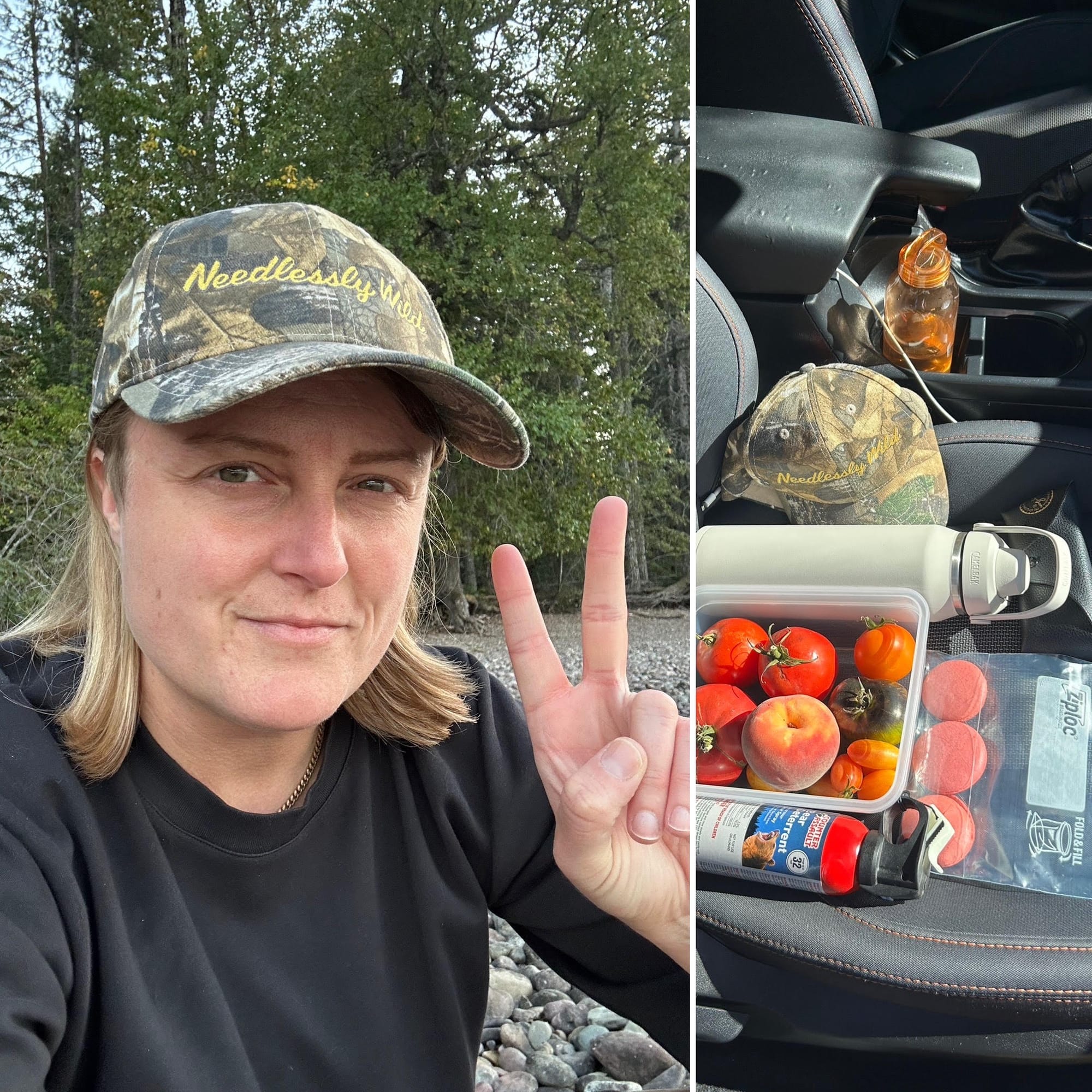 I pack a very normal selection of front seat essentials that includes a pile of almost ripe tomatoes from my favorite farmer’s market tomato guy, three perfect raspberry macarons (Evie is baking through it), and the bear spray I bought last year in the Tetons. I keep the bear spray in the passenger seat and religiously take it out any time I leave the car for an extended period of time after hearing a bunch of horror stories last year about people leaving canisters of bear spray (aerosol capsaicin i.e. breathable chili pepper) in hot cars and returning to a hole in the windshield and spicy, spicy interior. I don’t know how often this actually happens but it isn’t going to happen to ME.
