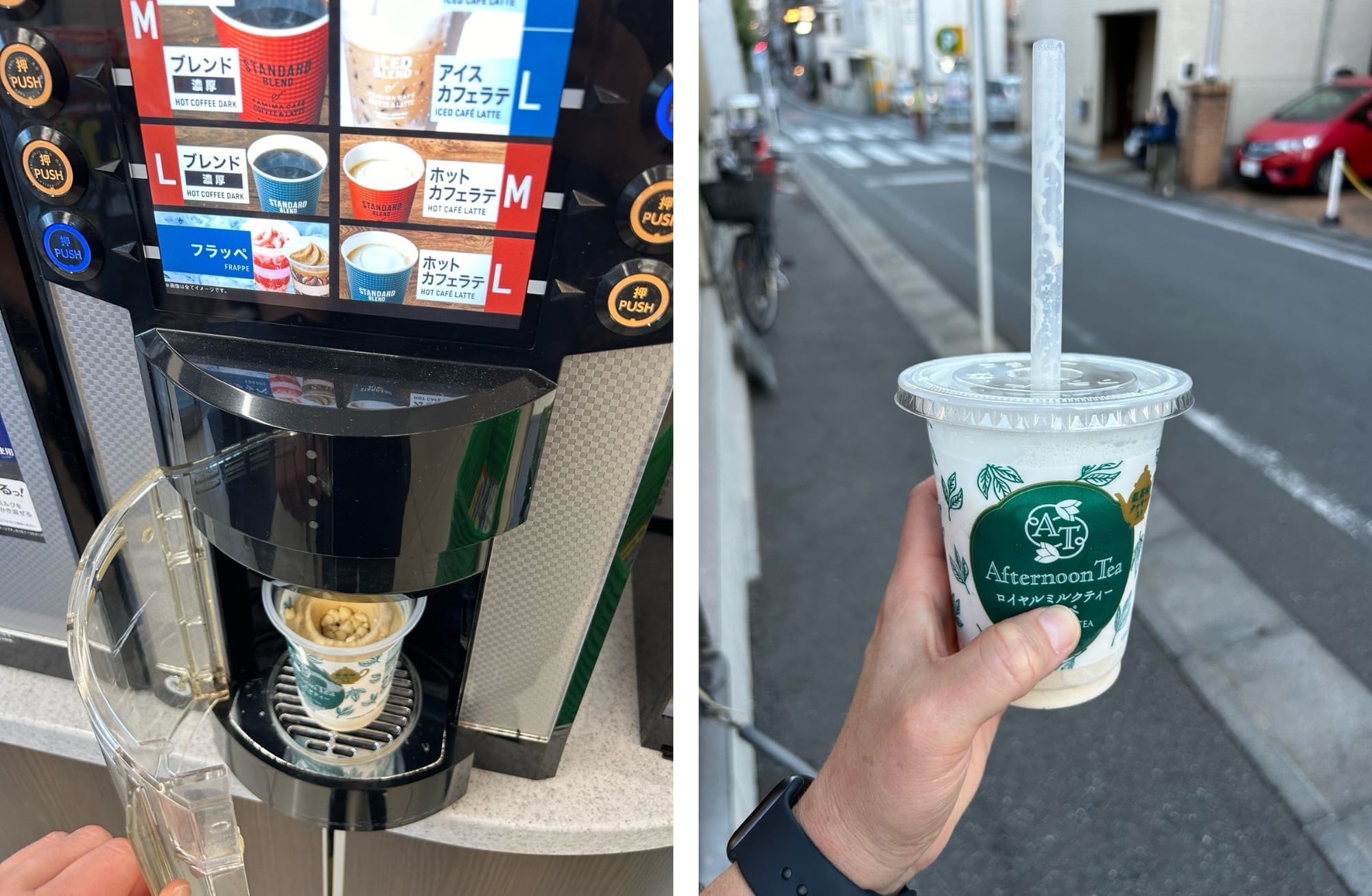 You pick one of these frappes from the freezer, peel off the plastic seal and pop it into the same machine that dispensed unto me an iced latte pretty much every morning for six weeks. The machine shoots out some milk and hot water to get things mixing together, you stir it with the straw and voilà, a perfect frozen-ish milk tea every time. If you love a strong royal tea flavor and enjoy an excuse to eat ice cream by other names, these things are so good. 10/10 an afternoon tea for the ages.