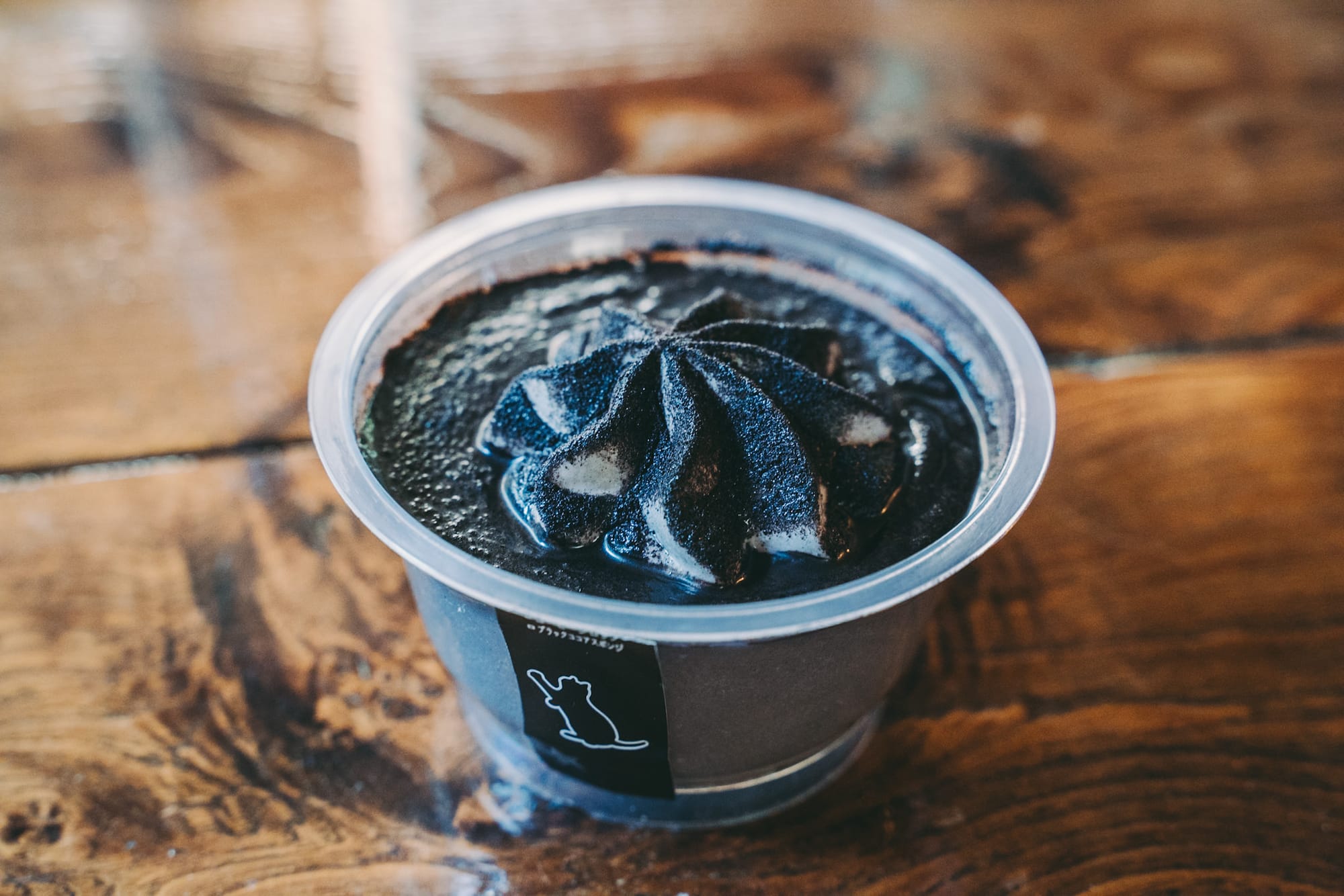 This was one I spotted and then couldn’t find again and had to hunt down. Look at him, our perfect little skelly cake and his sweet little grin askew… this one is fun, we love to see it! Based on the description (again, these are often weird or misleading whether in english or Japanese) I did not expect to want to eat this. I thought it was going to be a jelly-like texture with maybe more black jellies inside and while I am an adventurous eater I am just not a jelly gal (obviously my sole toxic trait).